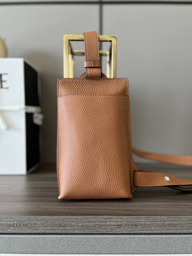 罗家正品级配全套包装 Lo*We新款粒面垂直T型胸包到货采用特订制Togo 皮, 皮料柔软、多功能的可穿戴垂直拉链小袋*斜挎 *可调节肩带*后面插袋可放手机*人