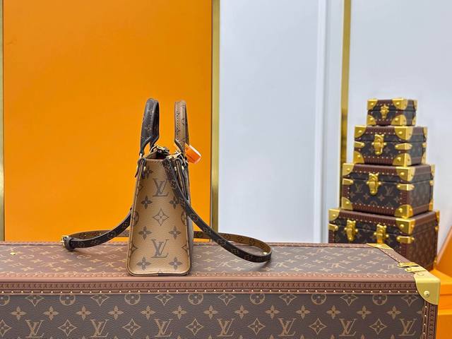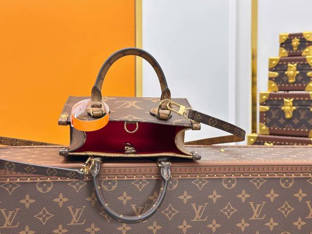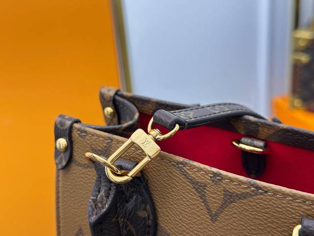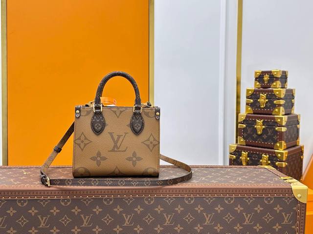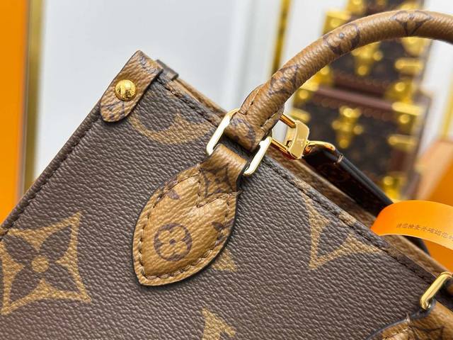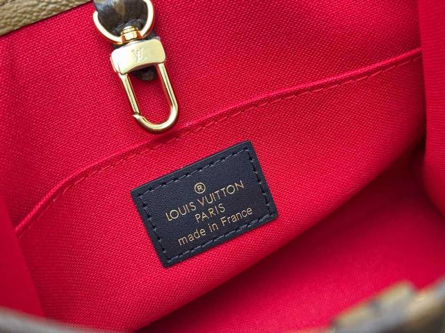 全钢五金 变码芯片 特级配全套包装 M46839迷你托特包 本款 Onthego托特包以Monogram帆布浓缩原版设计,为皮革手柄及手柄固定件融入Monogram Reverse帆布。充裕空间可收纳手机,可拆卸并调节的肩带再添背携选项。详细特征 18 X 15 X8.5厘米 长度X高X宽