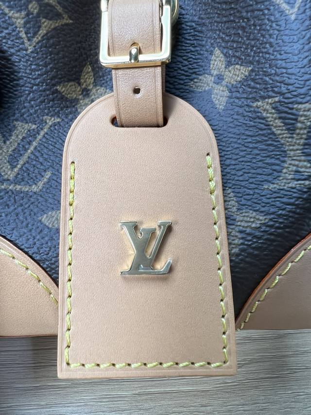 由 Monogram 帆布制成,点缀皮革细节,包括行李牌和可拆卸肩带。
