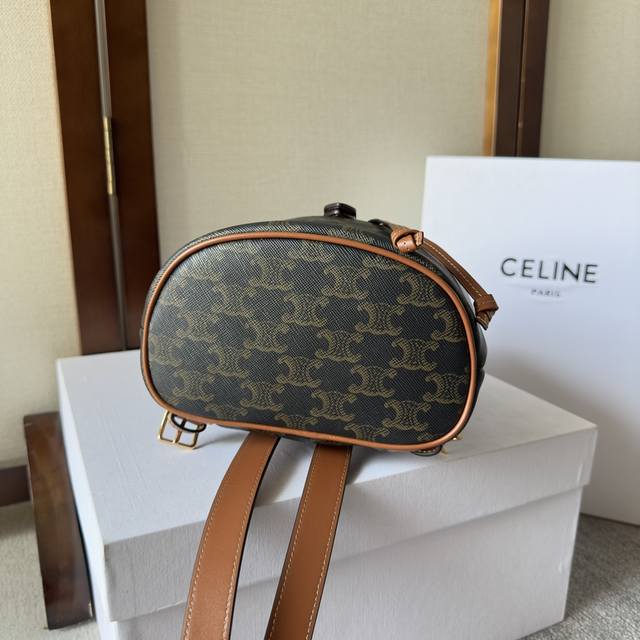 原厂皮Celin 春夏新品|Folco Triomphe Canvas迷你小背包Triomphe Canvas标志印花牛皮革包边,织物面料衬里,可手提,手柄长度