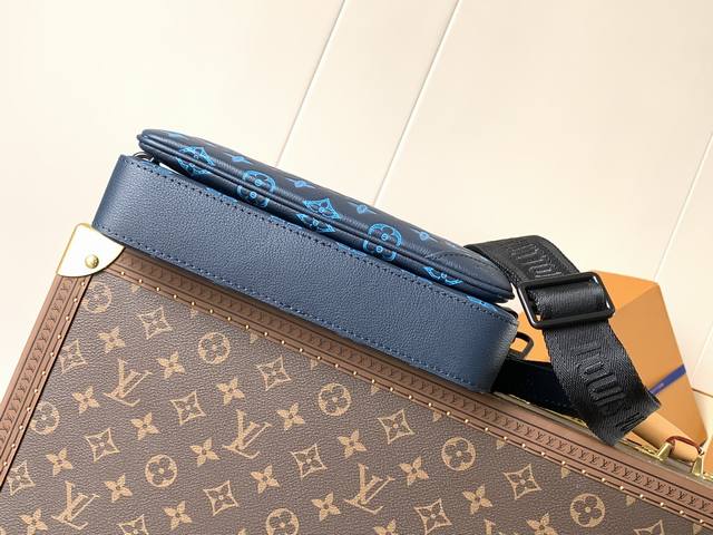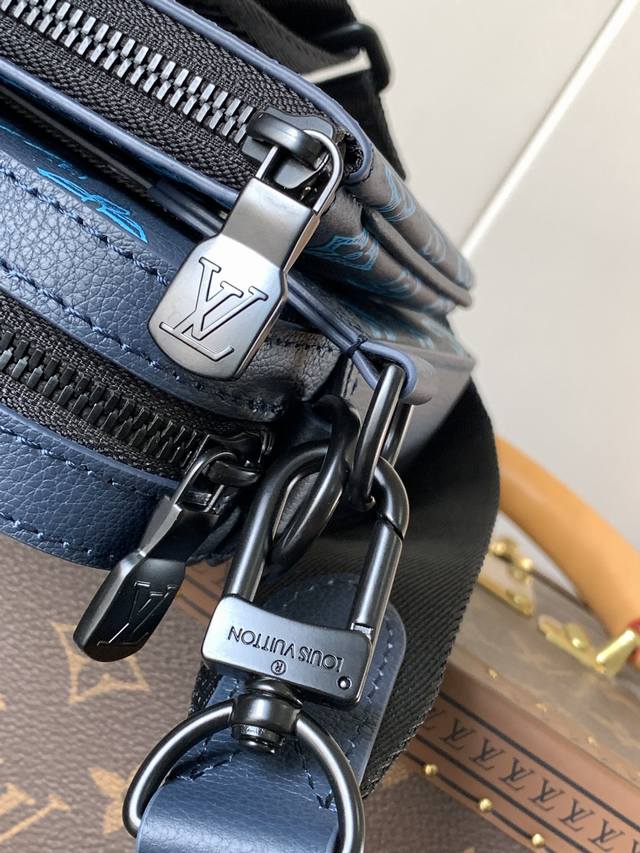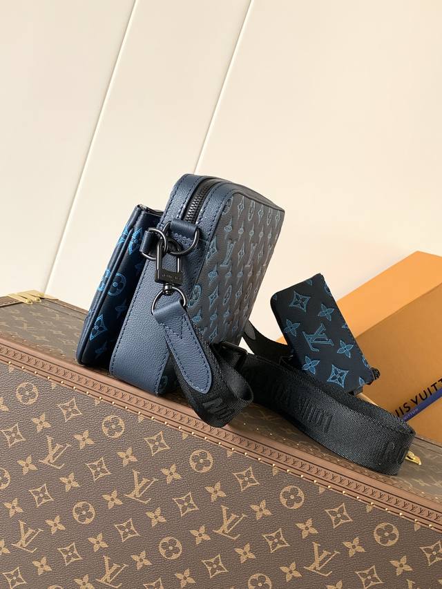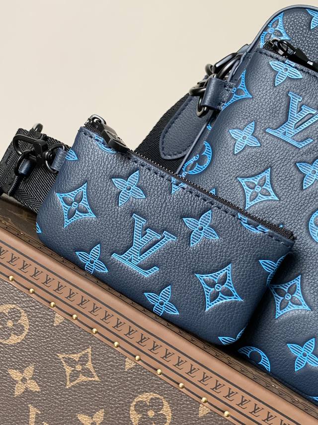 顶级原单 变码芯片 独家实拍 M46604蓝色 本款 Trio 邮差包取材 Monogram 压纹牛皮革,拉链前袋和肩带处的小号零钱包均可拆卸,与主隔层共同丰富