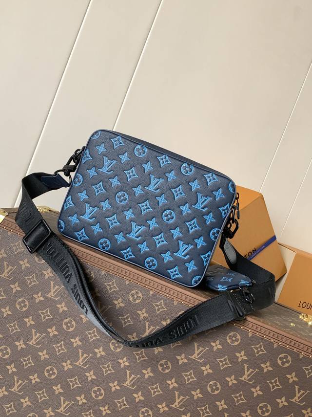 / 顶级原单 变码芯片 独家实拍 M46604蓝色 本款 Trio 邮差包取材 Monogram 压纹牛皮革,拉链前袋和肩带处的小号零钱包均可拆卸,与主隔层共同丰富