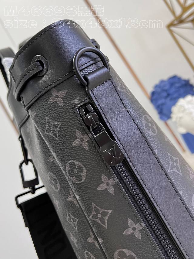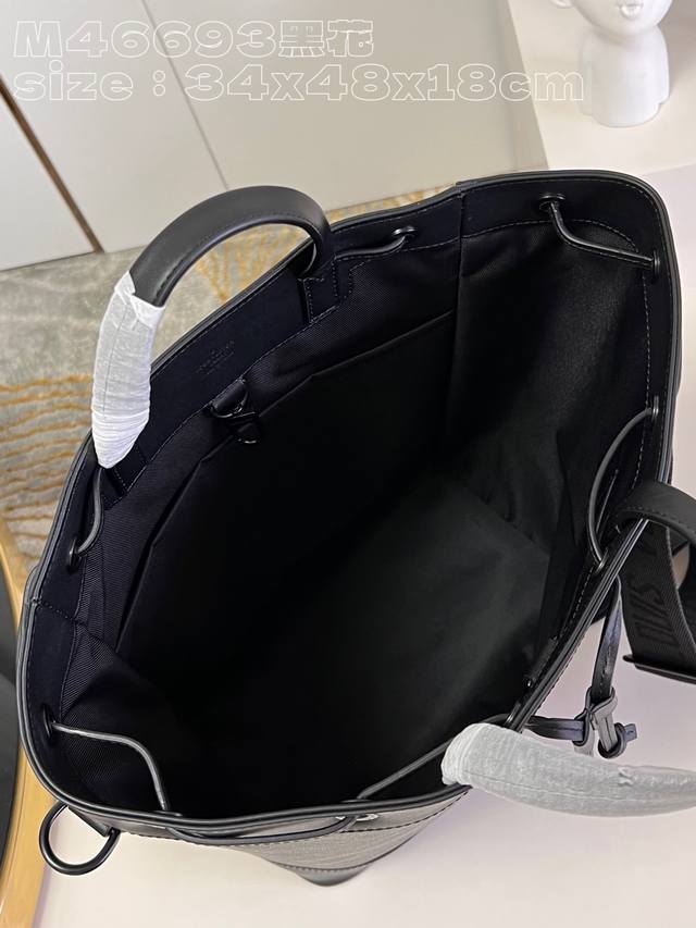 M46693黑花 Monogram Eclipse帆布的Maxi Noé Sling包融合了功能与现代风格,这要归功于其拉绳闭合、圆形形状和舒适的纺织表带。它的