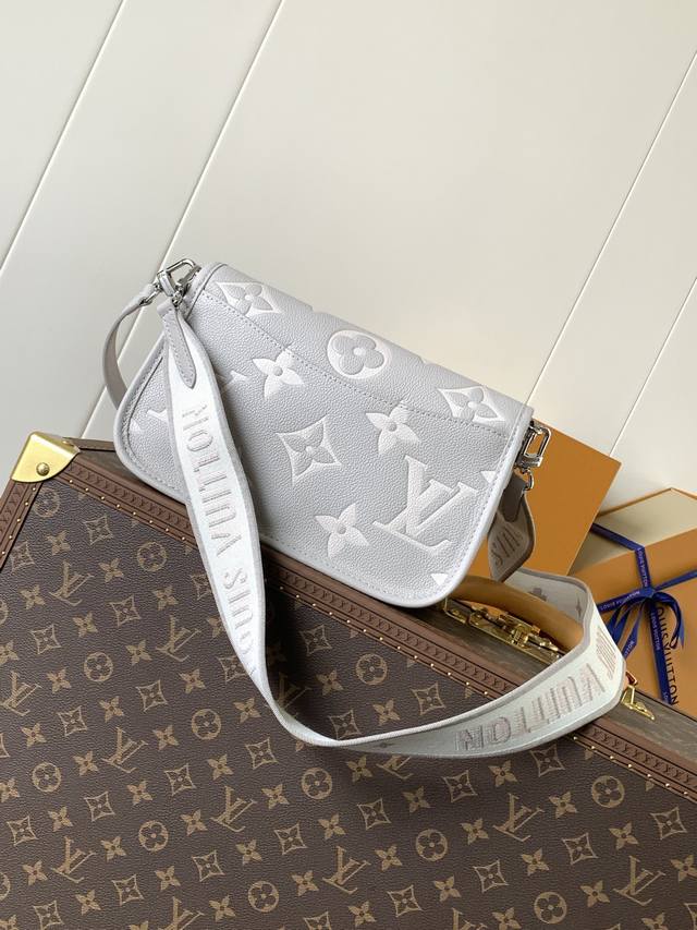 本款 Diane 手袋为 Monogram Empreinte 皮革点缀耀目金属件,焕新演绎 Lv Milky Way 系列的经典设计。可拆卸织物肩带流露动感气息,皮革短肩带成就优雅背携风尚。
