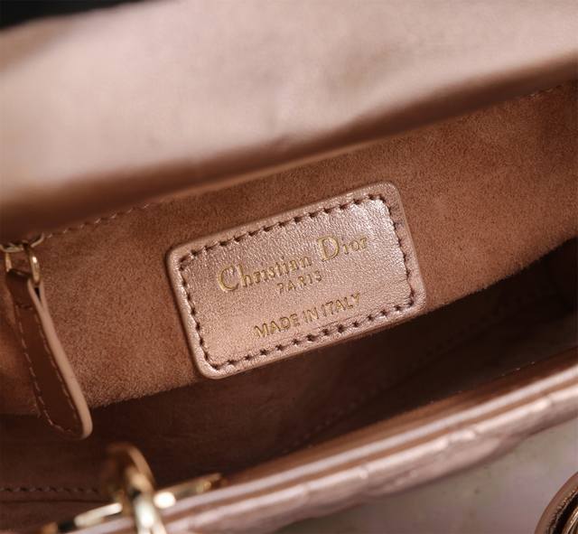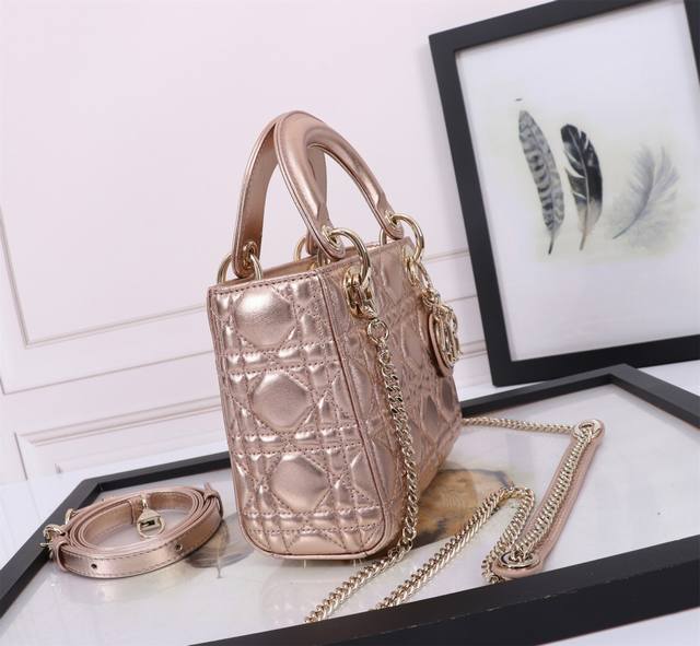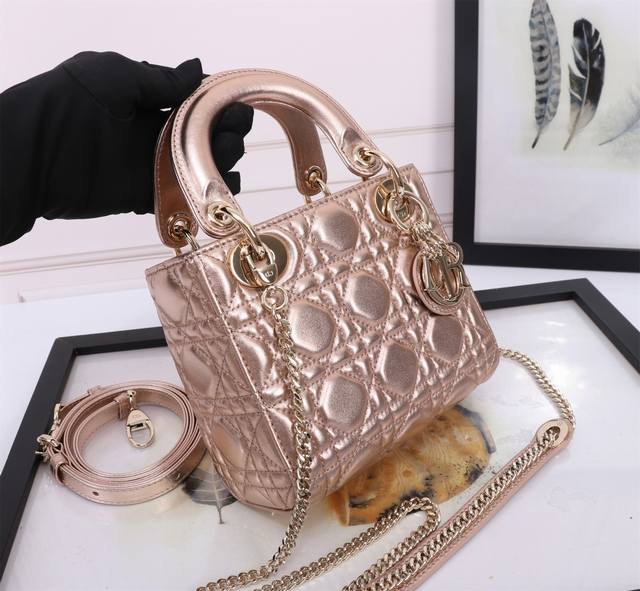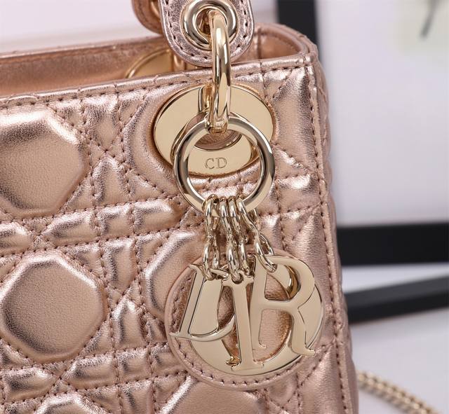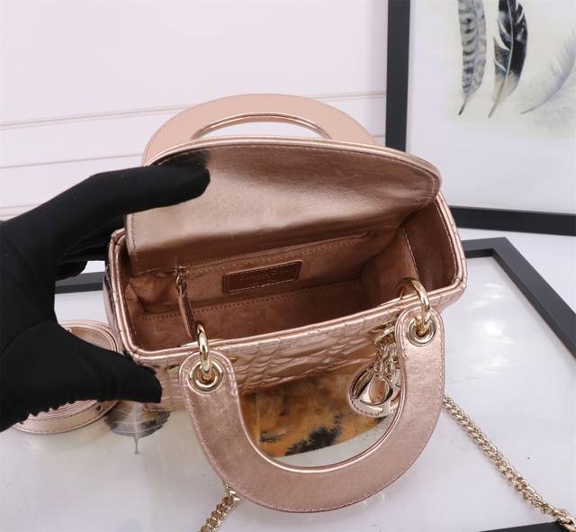 藤格纹漆皮牛皮革迷你手袋,Cannage藤格纹缝线装饰,搭配链带和金属配饰。 可拆卸长链带,可手提亦可肩背或斜挎。