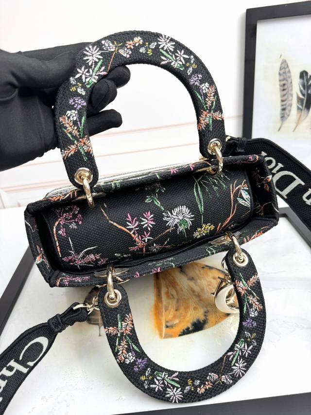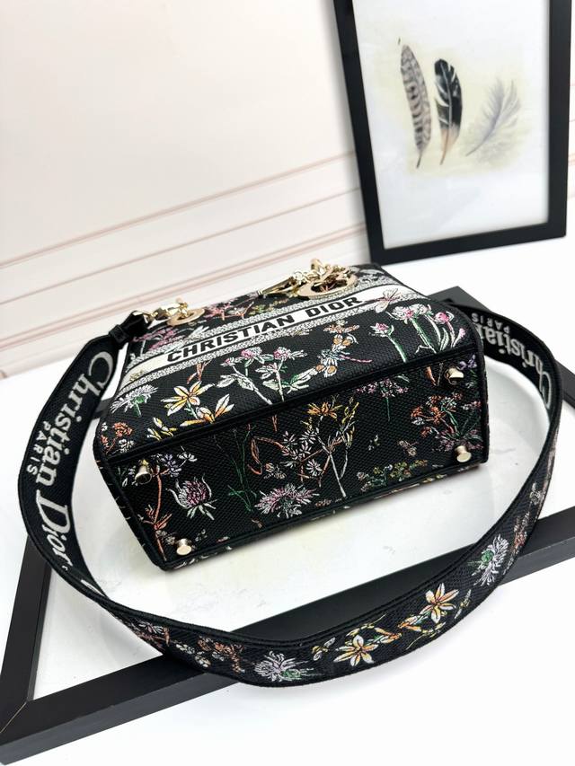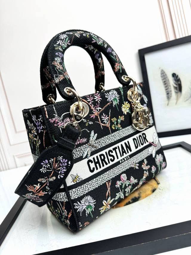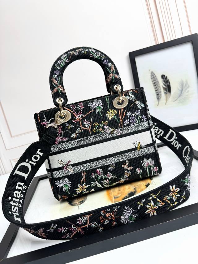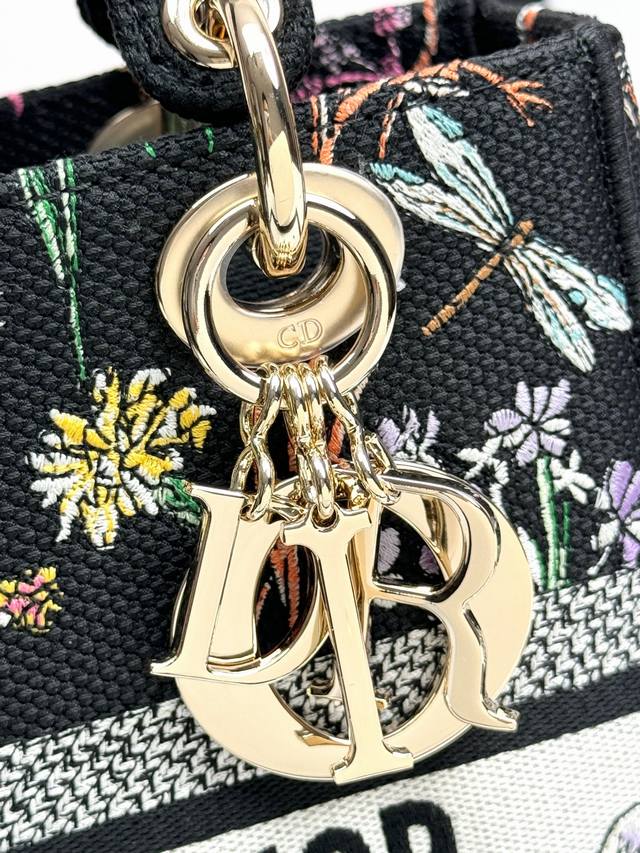 这款 Lady D-Lite 手袋将经典优雅的气质与时尚风貌融为一体。通体饰以由彼得罗 鲁福 Pietro Ruffo 设计 图案刺绣,彰显该系列的经典蝴之美,点缀以 L'envol Des Papillons DéVoile Nos DéSirs Aux éToiles 字样。正面饰以 Christian Dior Paris 标志,搭配浅金色饰面金属 D.I.O.R. 吊饰,为精美的轮廓增添一分灵动。中号款式,搭配可拆卸的刺绣宽肩带,可手提或斜挎