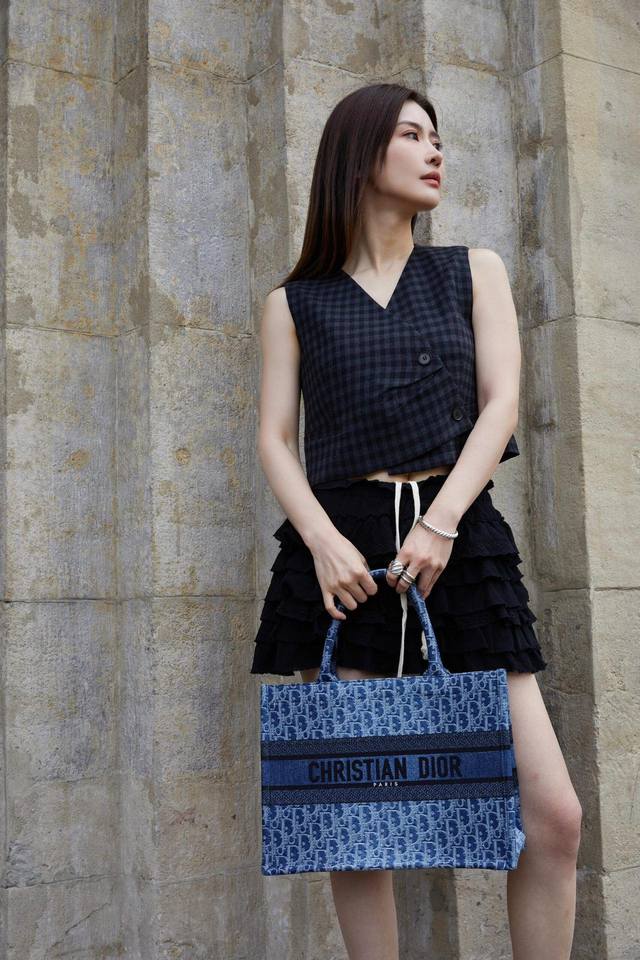 海外原单n40743独家实拍!本款 Montsouris 中号邮差包选用 Damier Denim 3D 棉质帆布塑造圆润廓形,令别致格纹肌理呈现柔软质感。Mo