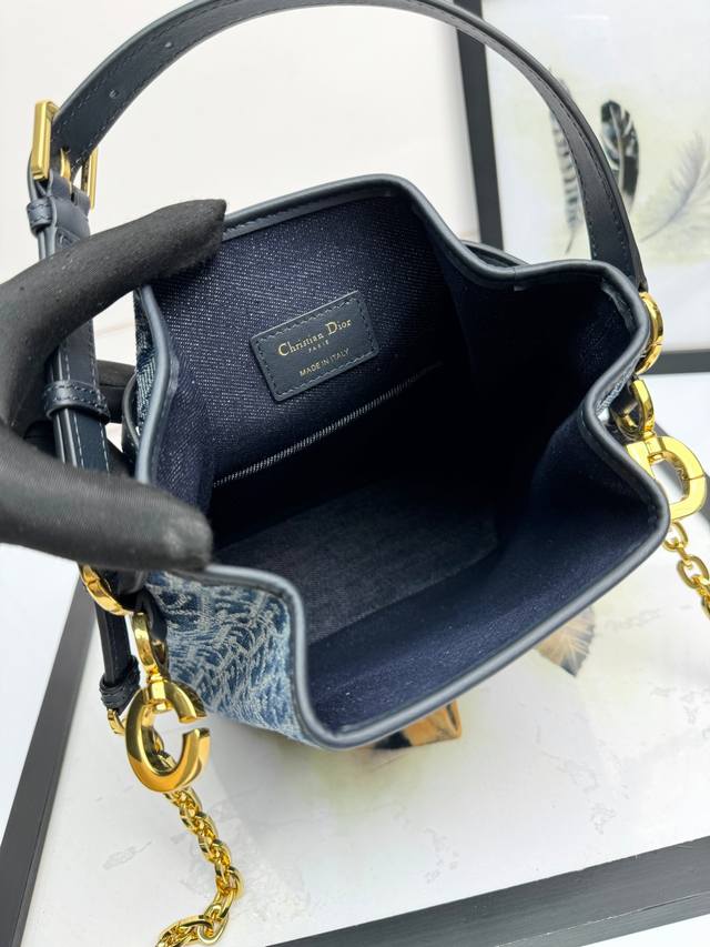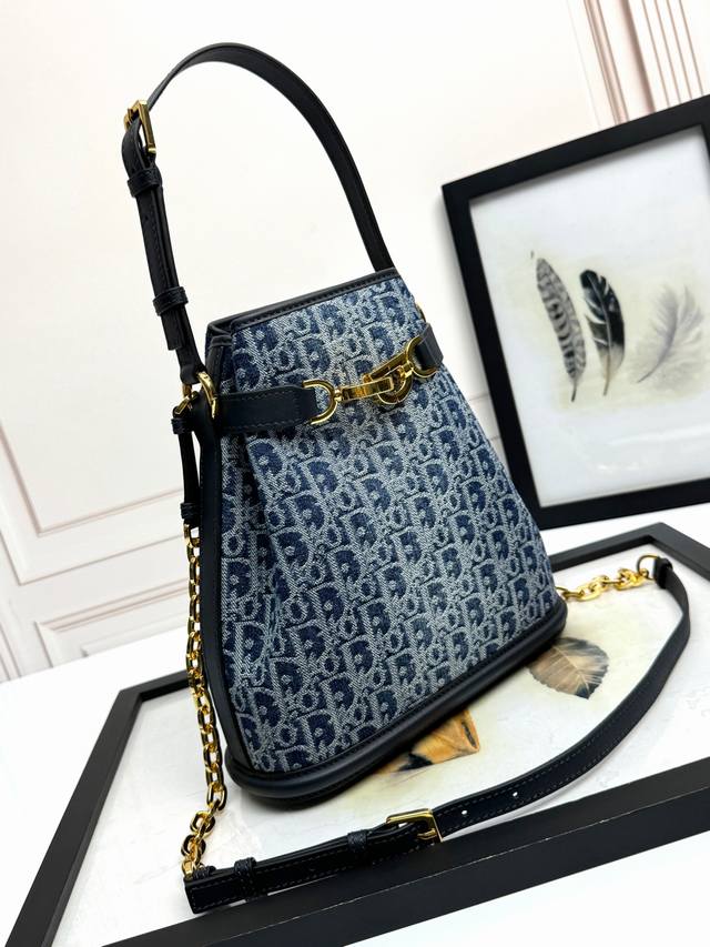 这款 C'est Dior 手袋是二零二三秋季新品,优雅而经典。饰以牛仔蓝色 Oblique 印花,蓝色牛皮革细节提升格调。水桶包造型,设有 Cd Lock 开合,饰以旋钮式字母 D,可安全收纳各种日常用品。中号款式,搭配顶部手柄和饰以皮革带的可调节、可拆卸的链条肩带,可手提或肩背,打造轻松舒适的造型。