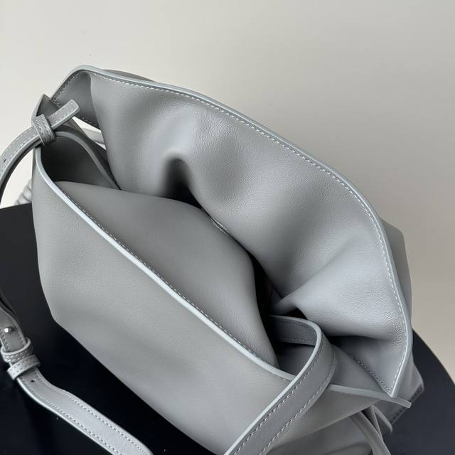 顶级专柜老鼠狠货罗意威 新版本 纳帕牛皮革Flamenco 福袋单肩包采用拉绳收紧 并打上标志性的盘绕结。此版本采用纳帕牛皮革制成Flamenco可以容纳例如一只大号钱包,所有尺寸的手机 或一本A5笔记本*0.5升的瓶子和太阳镜盒*肩背、斜挎或手拿*可拆卸可调节肩带*低调的磁扣开合*金色绒面革衬里Lo*Ewe压印