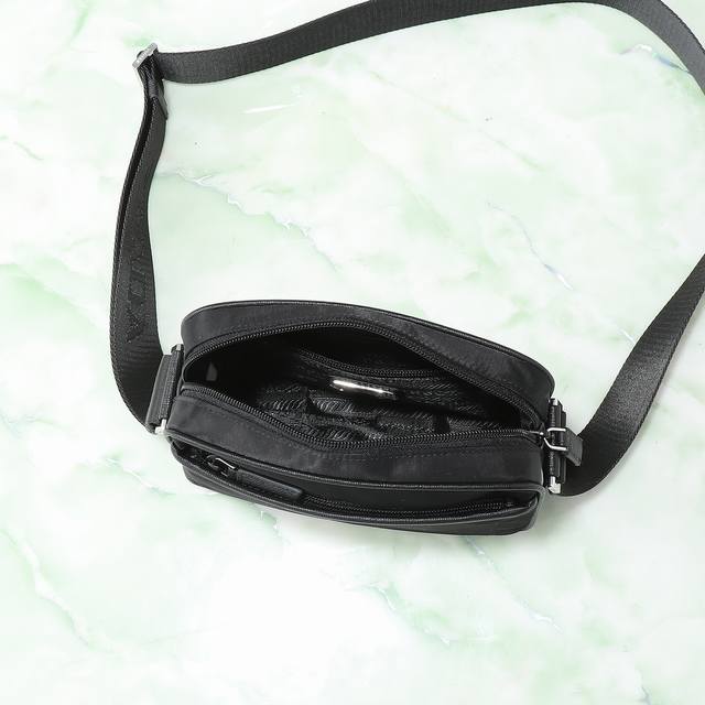 经典新款2Vh144到货原单货采用进口尼龙材质,Saffiano皮革装饰,抛光钢表面金属配件,可调节的织物肩带,外面珐琅三角形徽标,内部徽标标识,顶部拉链封口,前面有拉链口袋,里面有一个拉链口袋,轻便又实用,又是一款永久不过时的爆款长23X高16X底7Cm