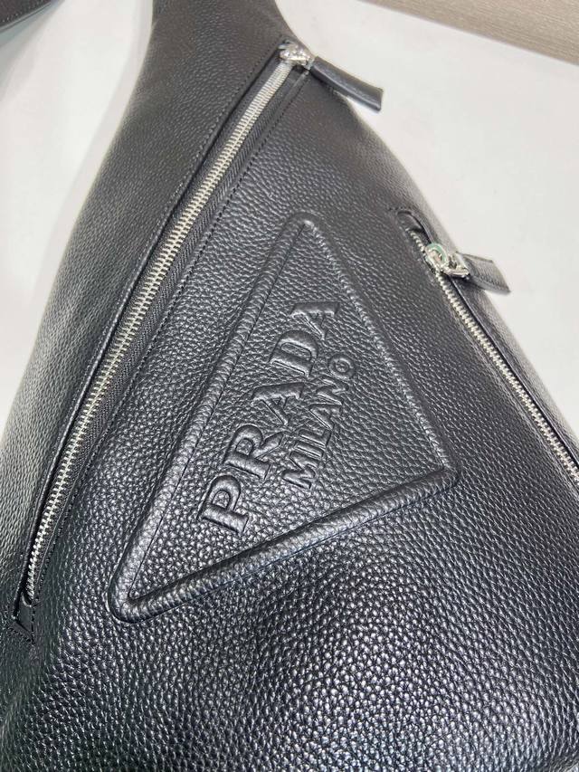 秋冬男士胸包采用进口鹿皮纹牛皮革,包身风格介于背包和单肩包之间,演绎混搭设计风格。配旁开扣的可调式编织尼龙肩带彰显功能性,标志性的涂珐琅金属三角形徽标彰显品牌格调。简约又大气,上身效果非常酷喜欢宝宝们,赶紧入手吧
