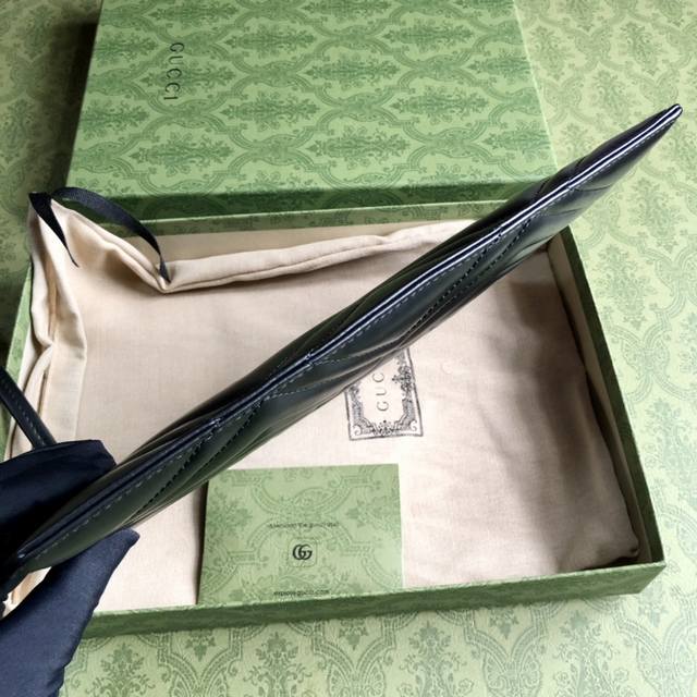 顶配版 原厂皮 款号:476440 原单到货G家新款手拿包到货,绣花碰边后绣爱心形标志内部空间充裕!专柜品质顶级意大利进口牛皮 古铜色双G金属配件 做工精细 !尺寸:30X20Cm 颜色:绣花 黑色 独家实拍图