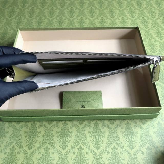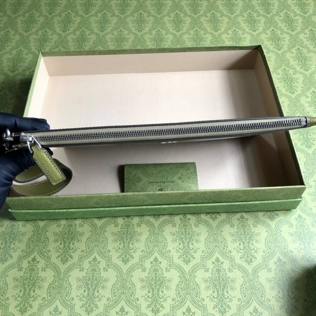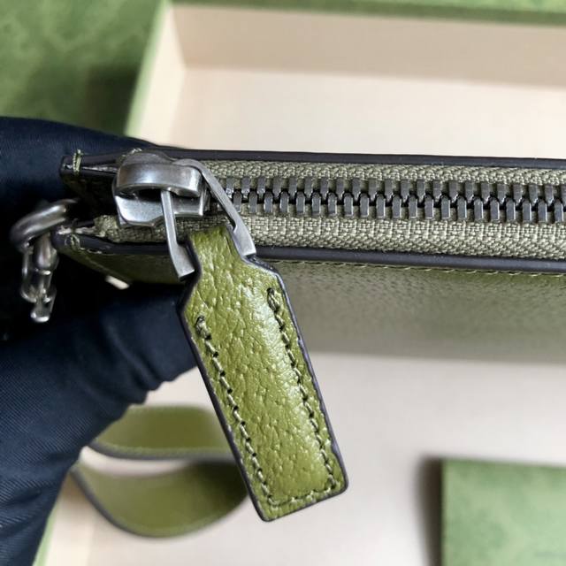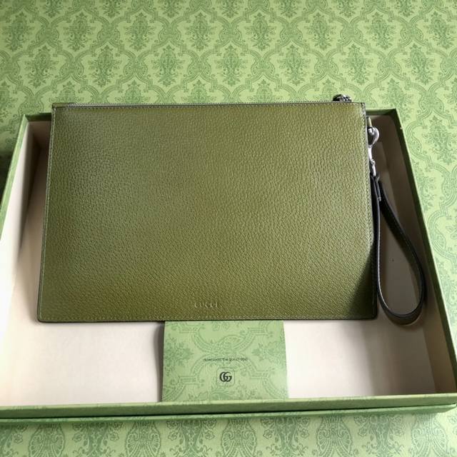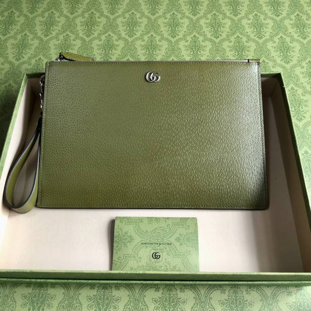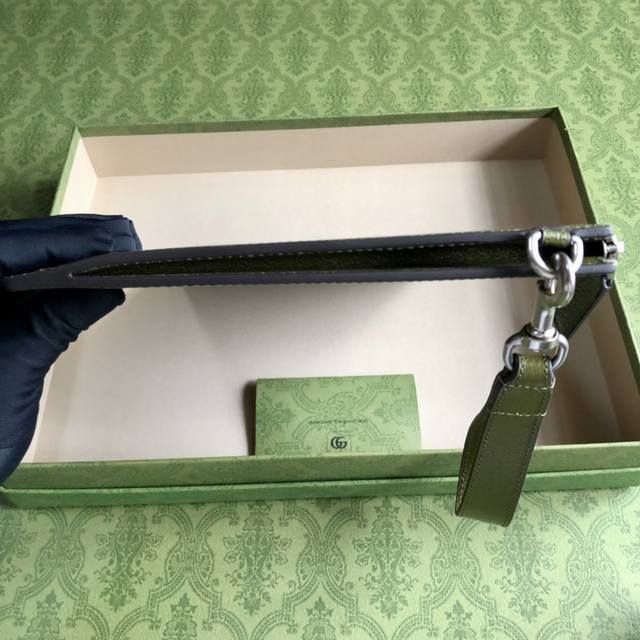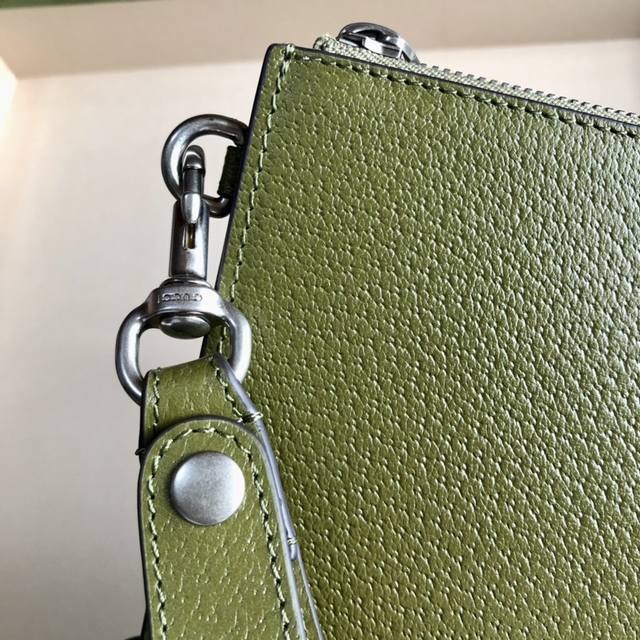 顶配版 Gg Marmont系列手拿包,Gucci持续更新配色,添加更精致的色调。在全新配色与组合中,品牌运用现代视角,重新诠释经典Gg Marmont系列。这款手拿包采用森林绿皮革精心打造,品牌标识配件则以钯金色调呈现。森林绿皮革,钯金色调配件