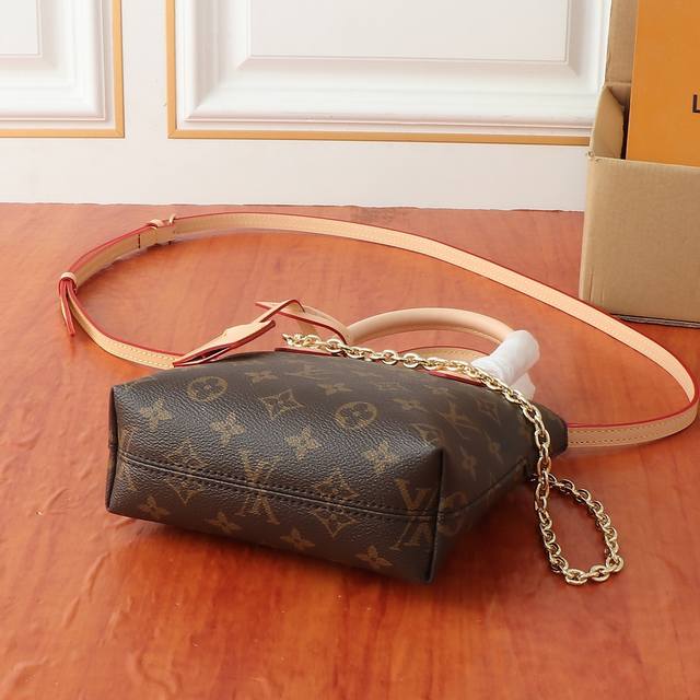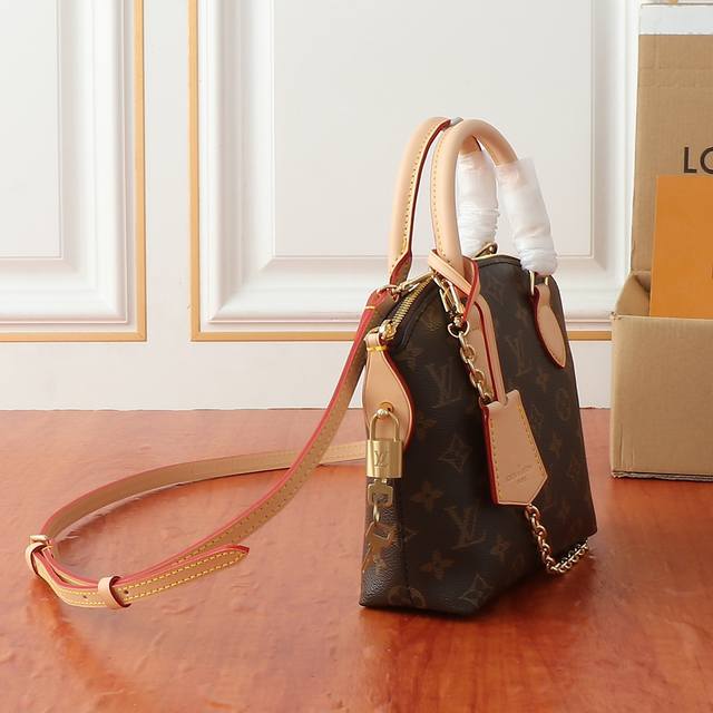 本款 Lockit Bb Lt 中古手袋自 1960 年代的 Knick-Knack 手袋汲取灵感,可灵活切换多种背携方式。Monogram 涂层帆布搭配弧形上缘和椭圆饰边,道出原版设计的经典元素。挂锁开合再度致敬品牌悠久传承。