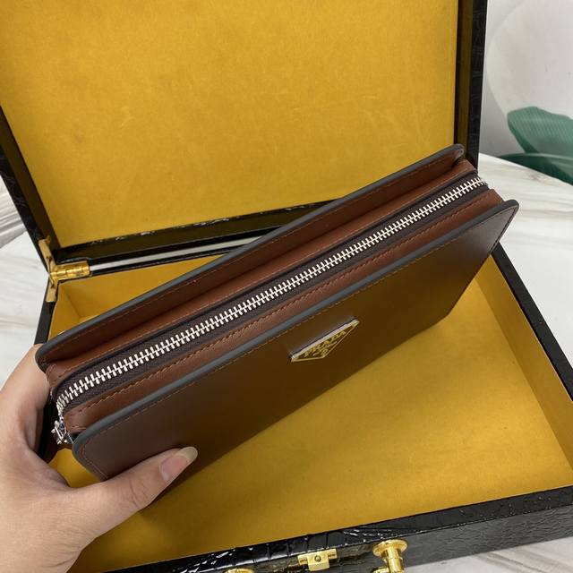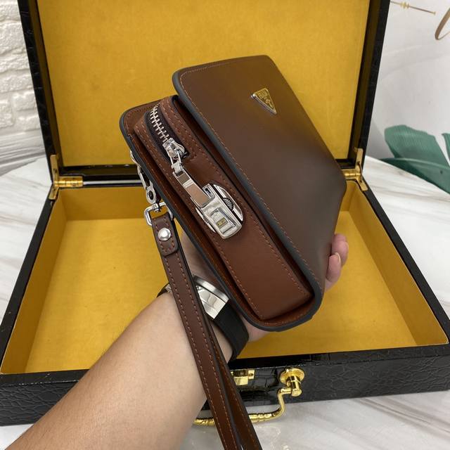 顶级原单醉新款手拿包到货。进口牛皮。配专里布。做工看细节,每一处都无比讲究,精致细腻。市场最牛货,一直坚持高端精品出击,手快者赚,下手晚了别说没提醒哦,实体店 最佳货源颜色: 啡色尺寸:26-17-5型号 5253-5