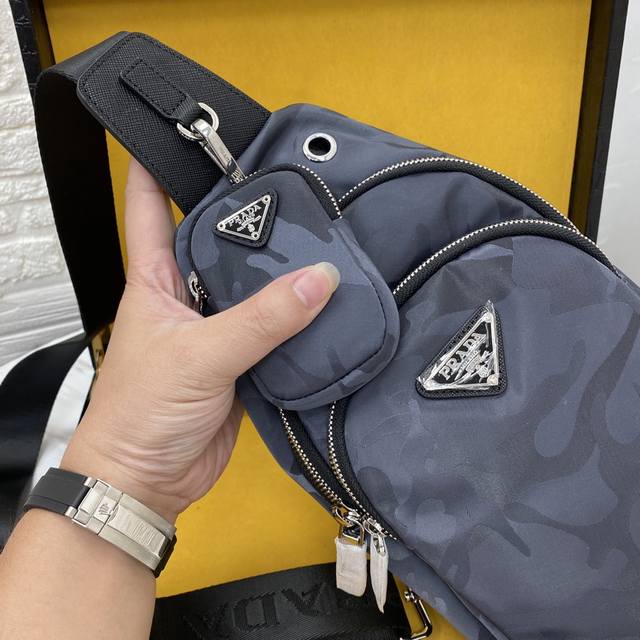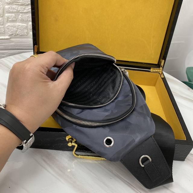 Prada-普拉达最新款男士胸包采用防水布料制作 手感超赞 版型超正 做工精致 细节完美 时尚休闲百搭 质量与质感都能衬托出你独特的品味 出街帅帅哒尺寸:27.18.7Cm