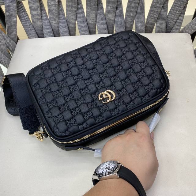 / Gg印花压纹邮差包,经典旅行配件采用全新配色在古驰爱的进行曲 系列中焕新演绎。Gg皮革将柔软质感与通体品牌标识压花相结合,运用不同纹理打造出微泛光泽的表面质感。