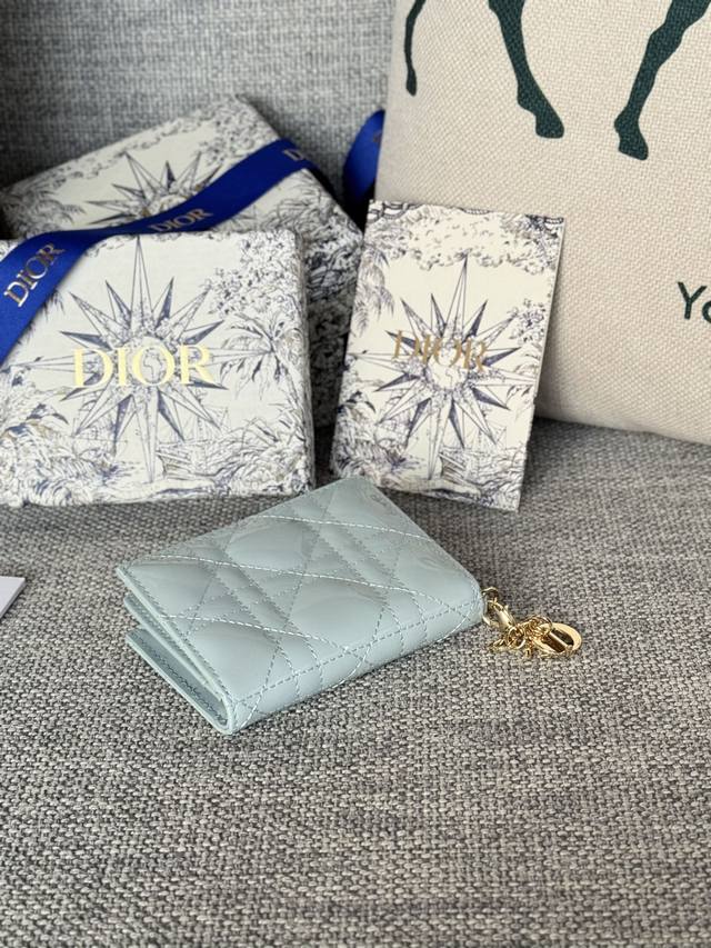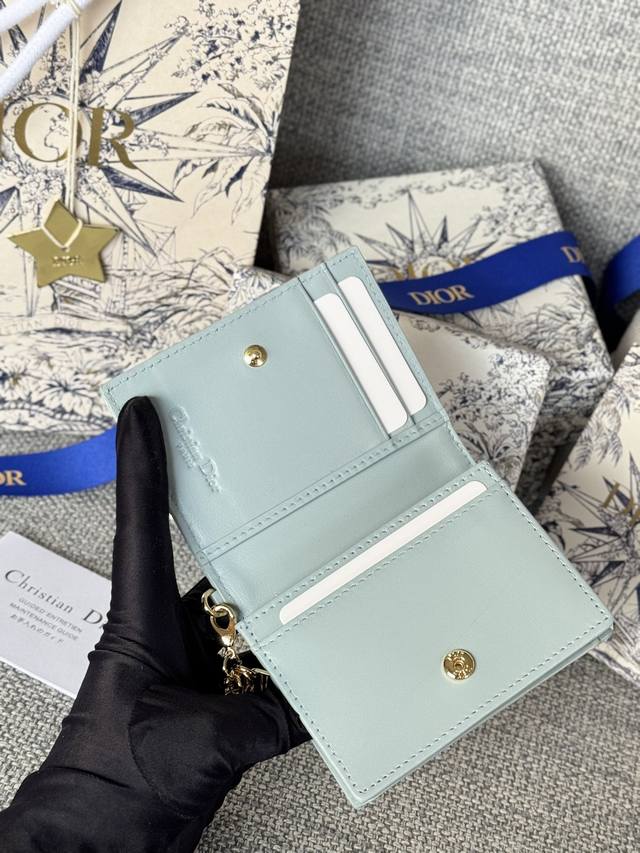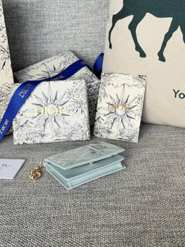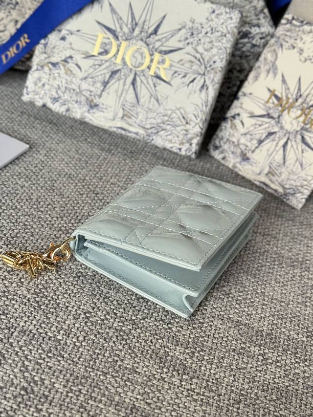 / 迪奥翻盖卡夹 编号:S0011 漆皮牛皮+内里羊皮精心制作,彰显 Lady Dior 系列标志性设计 搭配藤格纹缉面线和“D.I.O.R.”吊饰。实用而精巧。尺