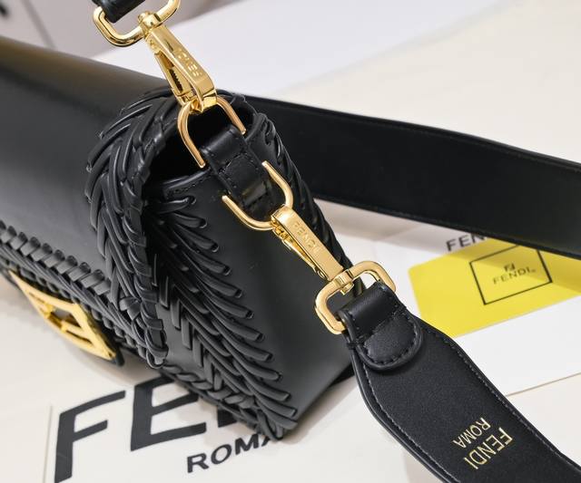 / Fendi 年早春新款 标志性Baguette中号手袋,羊皮纸色调皮革材质,手工重工编织。缀以Ff搭扣。设有正面翻盖、磁扣、带拉链袋的内部隔层和金色金属件。手袋