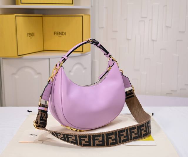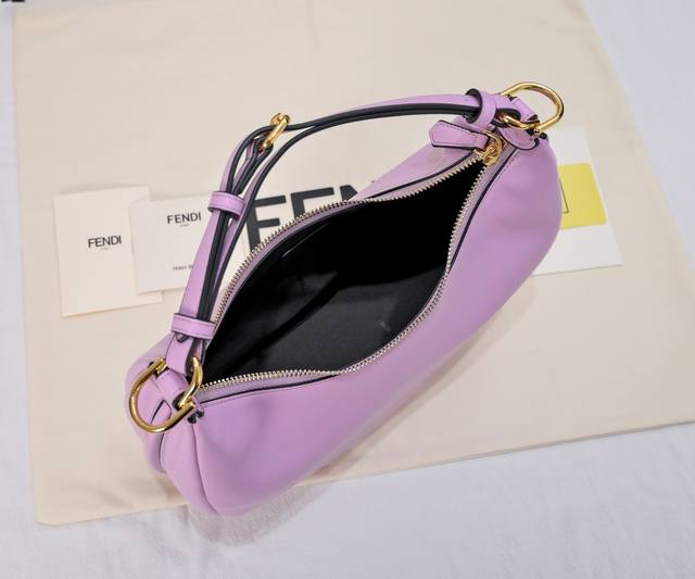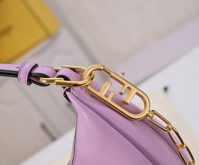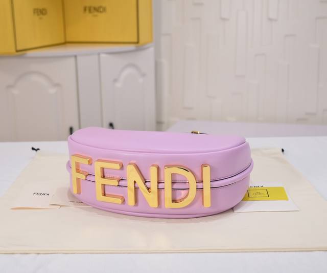 Fend1Praphy腋下包,以月牙造型为特色,把经典金属大Logo[Fend1]装饰在包包底部,包包的轮廓很贴切身体的线条,背在腋下的时候时尚感满满,简直就是行走的种草机!
