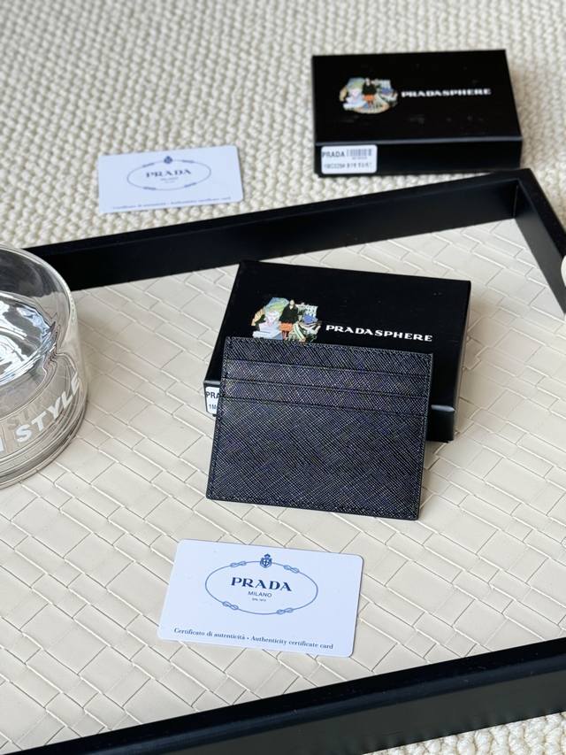Prada 爆款卡包 男女通用小卡包,黑色,型号1Mc025 散字 三角麦 系列 九个颜色 十字纹牛皮 制作,6个卡位一个中间夹层,可放置多张卡片以及零,尺寸1