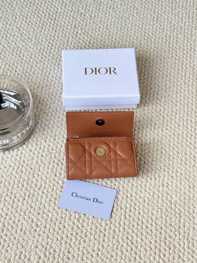 这款 Dio Caro 迷你小珍珠 卡夹优雅实用。采用柔软小羊皮 精心制作,饰以藤格纹缉面线,正面点缀以Cd珍珠 标志提升格调。高雅精致。