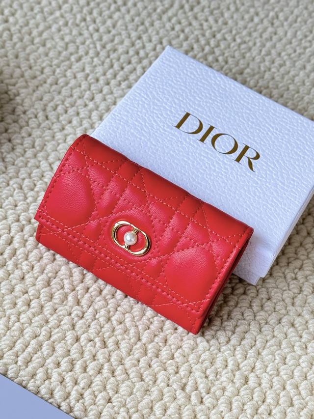 这款 Dio Caro 迷你小珍珠 卡夹优雅实用。采用柔软小羊皮 精心制作,饰以藤格纹缉面线,正面点缀以Cd珍珠 标志提升格调。高雅精致。