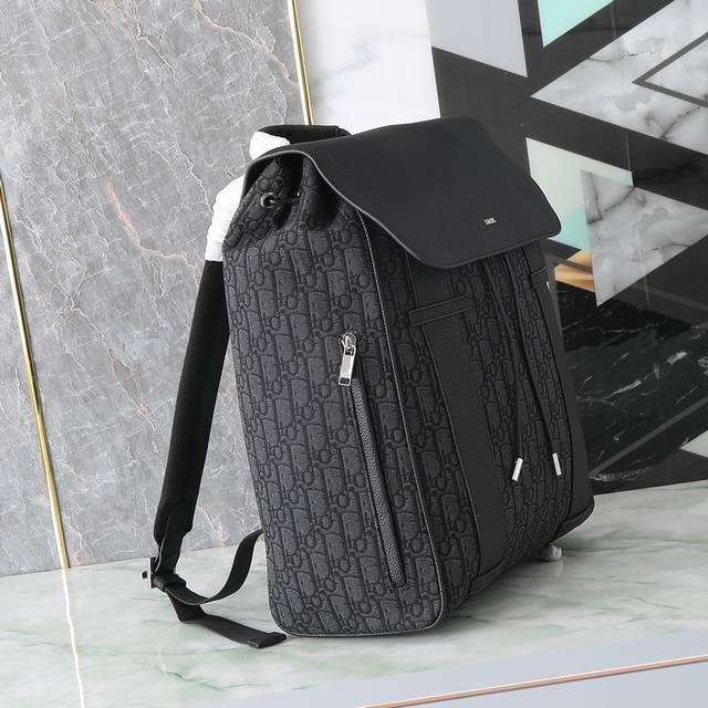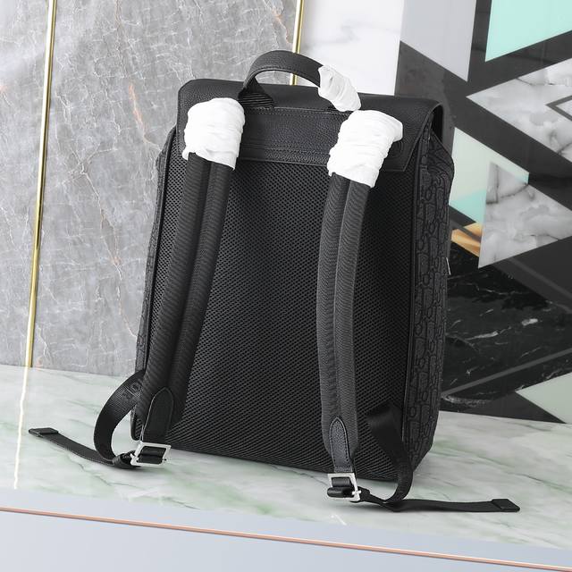 Motion黑色Dior Oblique黑色提花和黑色光滑牛皮革背包,外部胶面Dior, 内部热印Dior标志1个内部平袋,黑色牛皮革饰面黑色尼龙可调节背带黑色牛皮革把手背带与手提两用