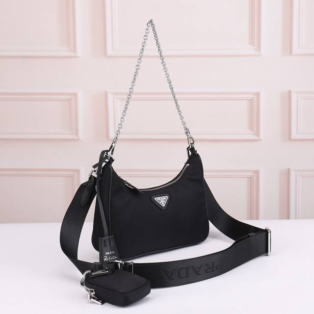 Prada-普拉达最新款单肩斜挎包官网同步 三合一系列 采用原版进口防水布料配原版五金 两个肩带 可单肩可斜挎 加配一个零钱包 做工细节精致 手感舒服 代工 原版品质尺寸:22.16.6Cm