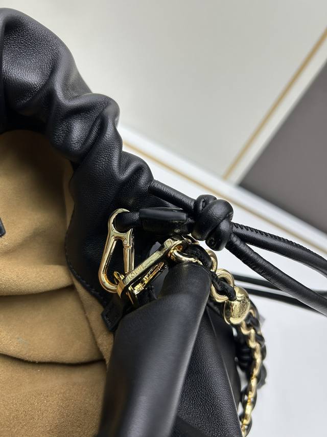 原单 “ ” 大号黑色 全新手拿包 独家首发到货 尺寸:30-10.5-20Cm 编码:S260809 采用褶皱设计,侧面搭配标志性绳结等关键细节。 时尚百搭,
