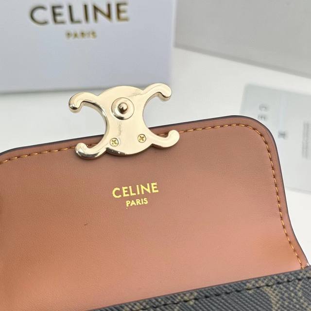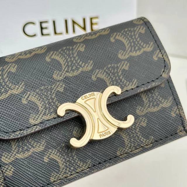 Celine 8591 颜色 黑色 杏色 棕色 老花 尺寸 9* 10.5*2Celine 专柜最新款!Triomphe 紧凑型钱包 闪亮小牛皮 简约大气 ,精