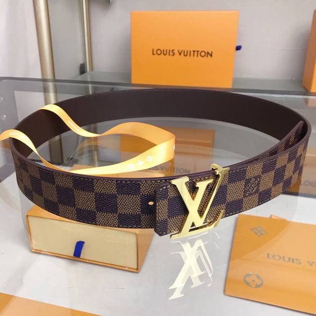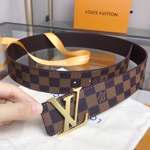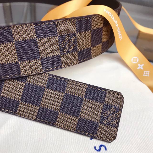 最高版本,实物拍摄 批 Louis Vuitton 路易威登皮带 宽度:40Mm专柜同款男士时尚款 驴家经典款黑格 Damier Ebene 帆布和柔软小牛皮分