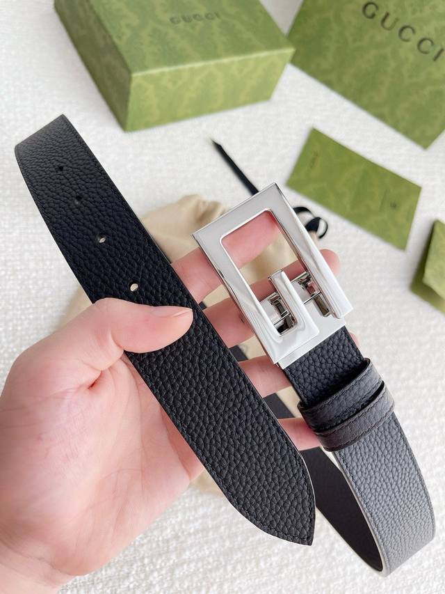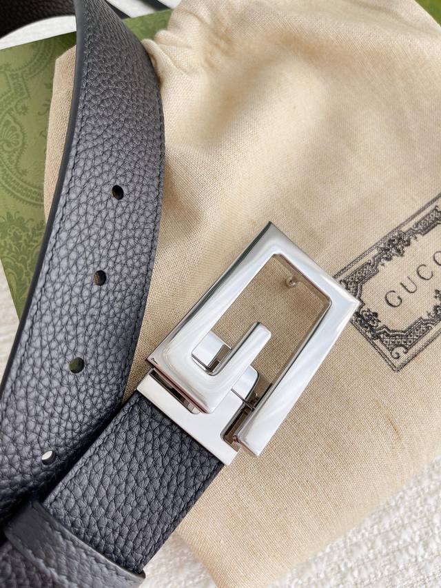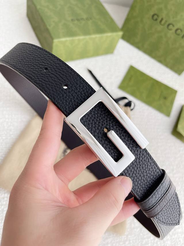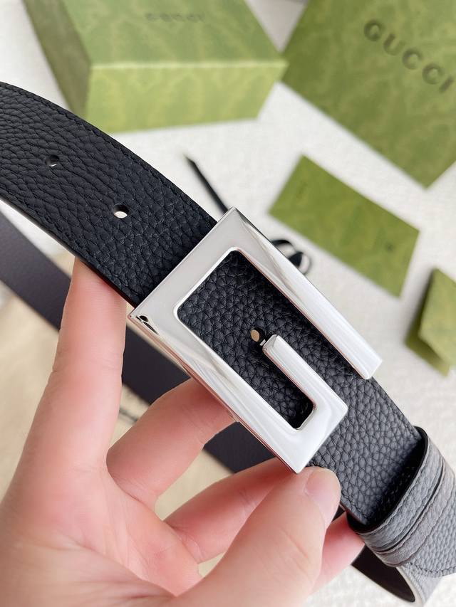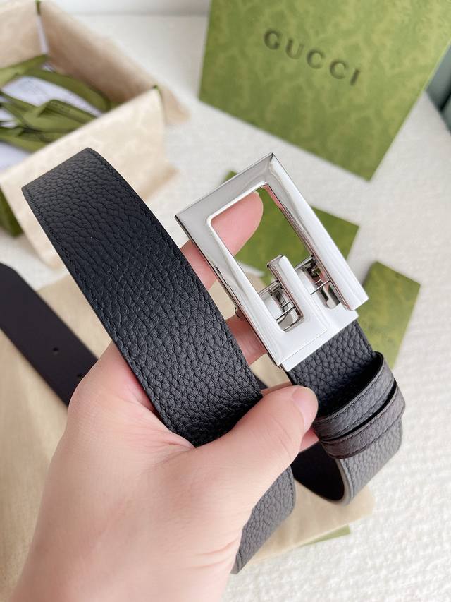 3.5Cm专柜品质双面头层牛皮,可双面使用.旋转双G纯铜五金扣。男女同款