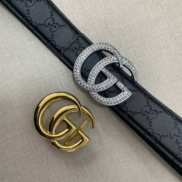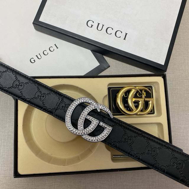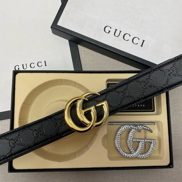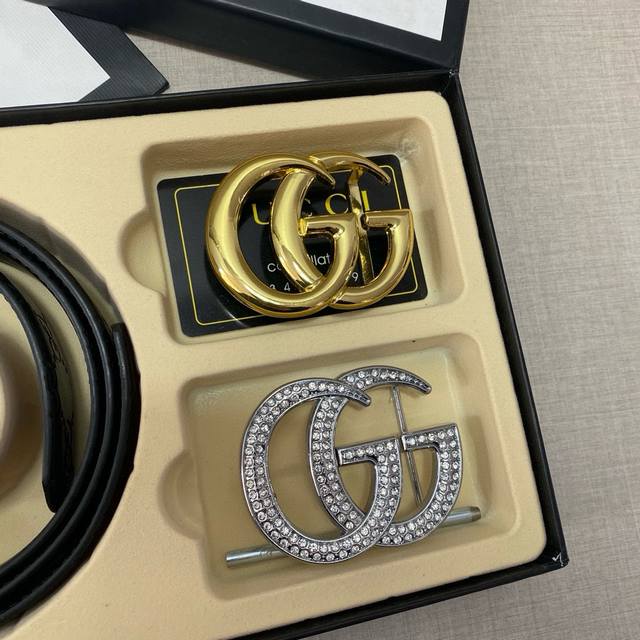 G精品款 ☆双扣礼盒套装 含礼盒 专柜有售 Gucci专柜在售正品 此款采用头层牛皮制作 走线油边细致 正品开模 搭配仿铜扣经久耐用、3.8Cm规格 送打眼针