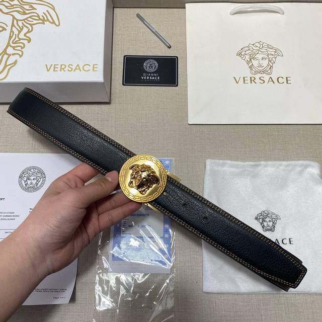 原版品质打孔 品牌:范思哲家 男款 颜色:黑 扣头:金 银 枪 扣头:原版精品纯铜五金扣头 带身:原版牛皮 尺寸:宽约:3.8Cm...
