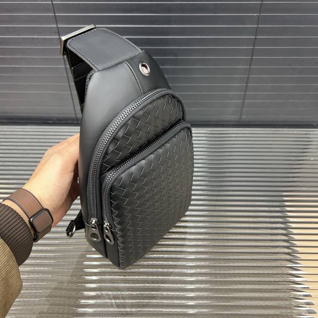 / Bottega Veneta 葆蝶家 手工编织男士胸包 单肩包 斜挎包 采用精湛镶嵌细工 经典百搭 实物拍摄 原厂原版面料 配送防尘袋 礼盒 30 X 16 C