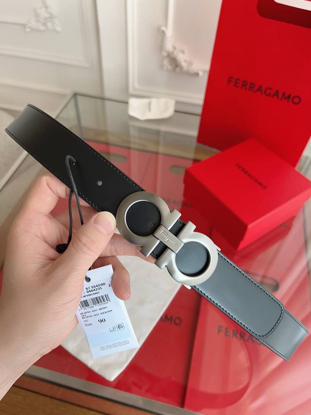 Ferragamo.菲拉格慕 全套包装 宽度3.5Cm 高级定制款男士皮带 双面进口牛皮 可双面使用 自行选择搭配 真材实料 很有质感...