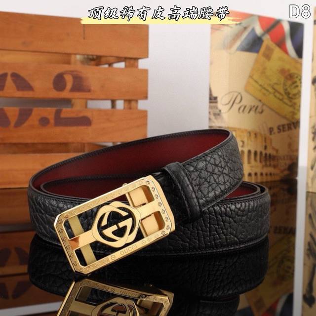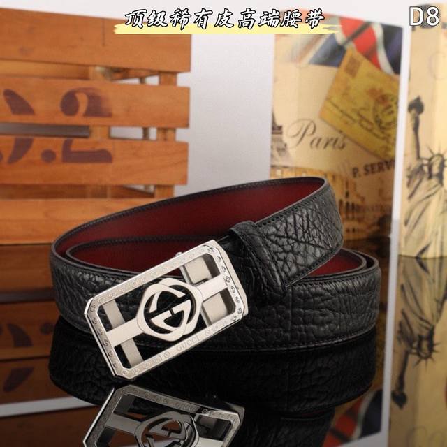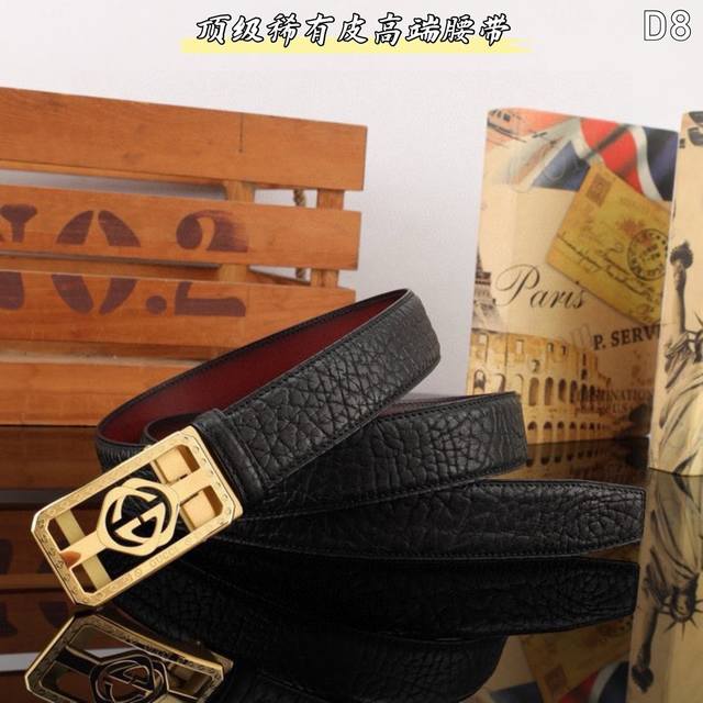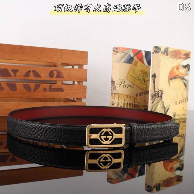 顶级原单复刻版 ,配送专柜全套礼盒包装进口原厂头层牛皮皮带 男士商务休闲腰带 Gucci.古驰 宽度3.8Cm...