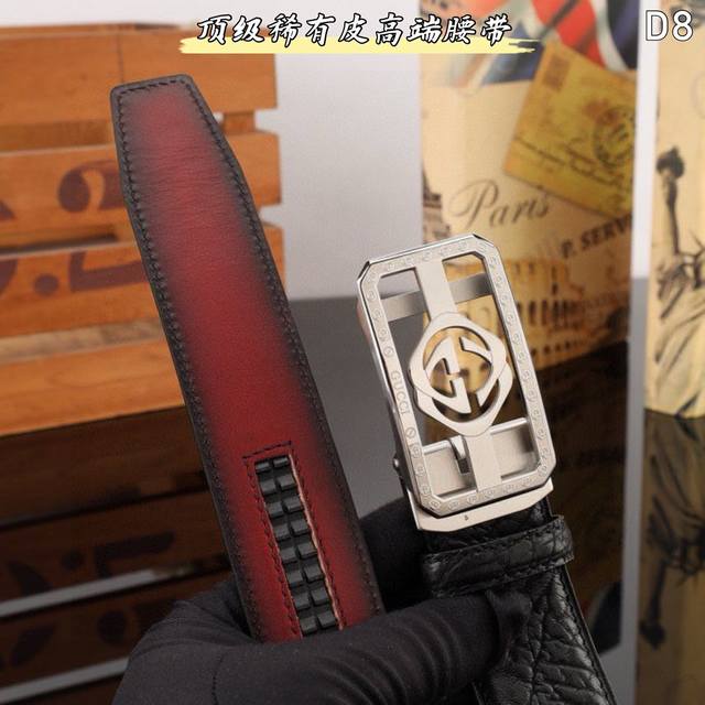 / 工厂直发 品名:古奇G野牛皮 宽度: 3.5Cm 特性:野牛皮、无夹层 带型:平滑带 滑道 全新升级版野牛皮板带,对帖意大利托斯卡纳进口透染树膏皮,两层对贴无夹