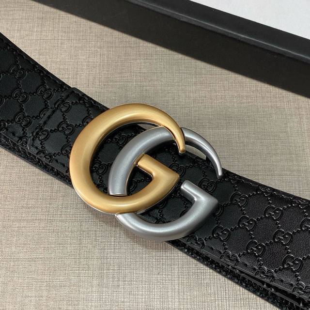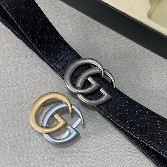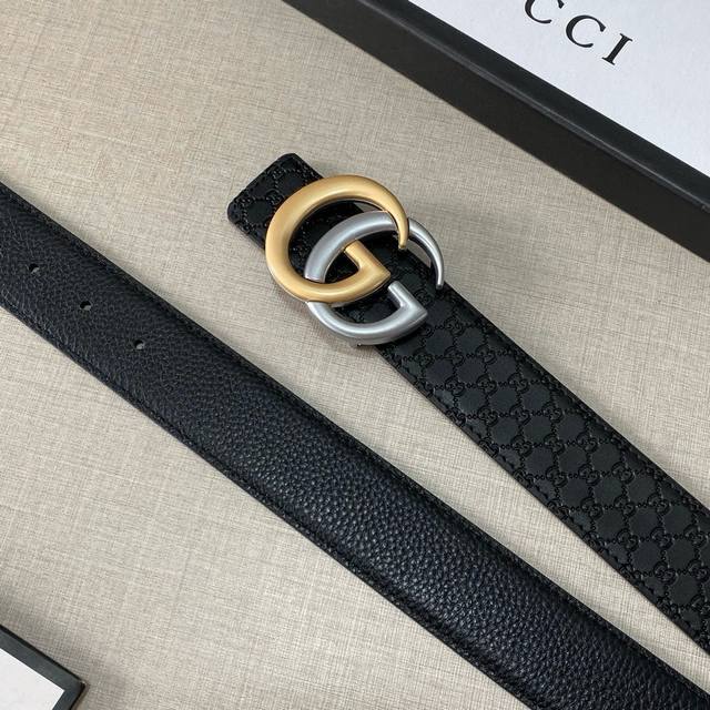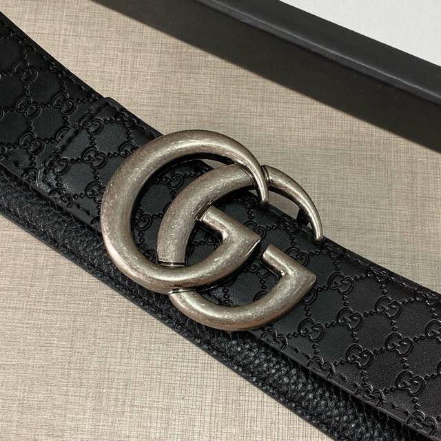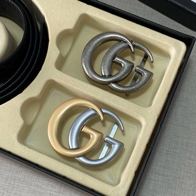 G精品款 ☆双扣礼盒套装 含礼盒 专柜有售 Gucci专柜在售正品 此款采用头层牛皮制作 走线油边细致 正品开模 搭配仿铜扣经久耐用、3.8Cm规格 送打眼针