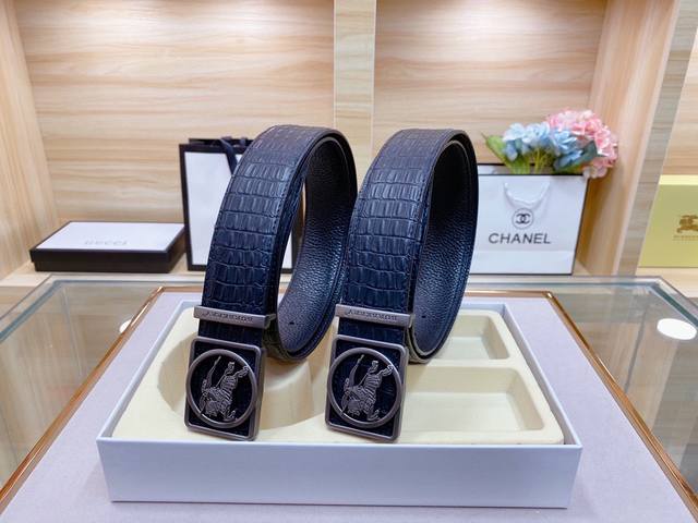 / 巴宝莉””亦为全球最大的高级时尚控股公司以传统手工设计和款式新颖誉满全球此款采用“双面”牛皮两面可用随意搭配展现不同风格随心驾驭[奸笑]宽度3.8厘米 附带原版