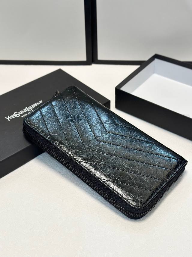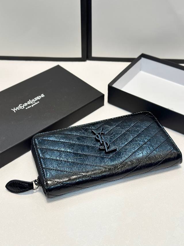 颜色 黑尺寸 19X10圣罗兰款单拉链钱包手包进口油蜡小牛皮质感一流独一无二风格,实用内阁超美超时尚美女必备单品