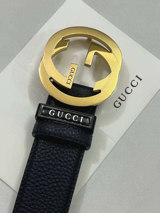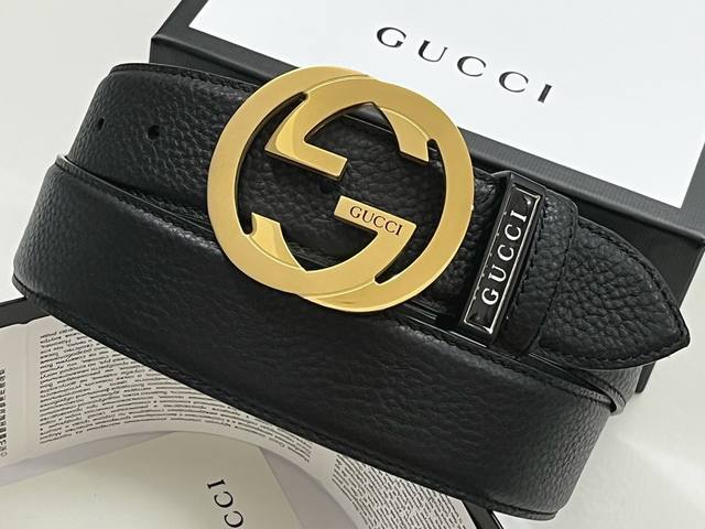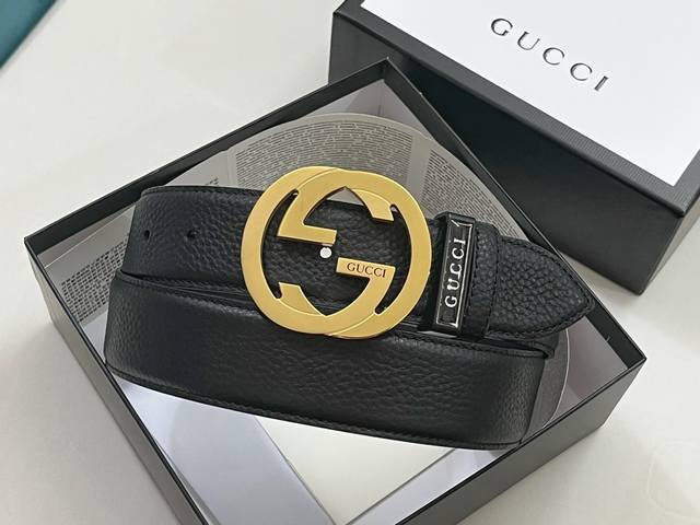 / 配全套专柜礼盒 Gucci.古驰 全套包装 進口荔枝紋面平紋小牛皮底 精品钢扣 宽度38Mm