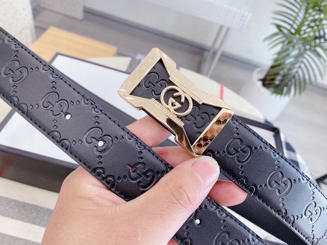 3.5 宽度 大爆款Gucc 全套包装礼盒装腰带 无论是高端大气的包装,还是真材实料的品质,都是一骑绝尘 无可匹敌的牛货,完美的礼盒包装:包装 高端大气非常上档次 新款海外订单,纯牛皮,非常结实耐用,质感厚实, 手感柔软细腻,皮质光泽凸显超高质感!!客供五金扣头:精工制作,高科技电镀工艺,精细打磨,不光是质感品质绝佳,其感观效果也是一流!!五金以及带身珍珠镶嵌 彰显了品牌奢华,款式简洁百搭,适合人群特别广泛,多大腰围都可以适应。皮带腰带