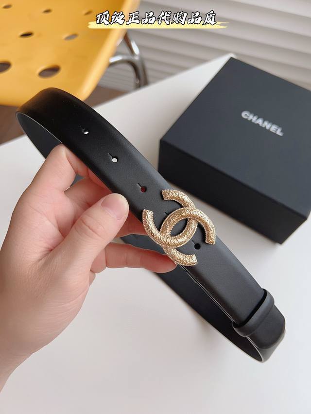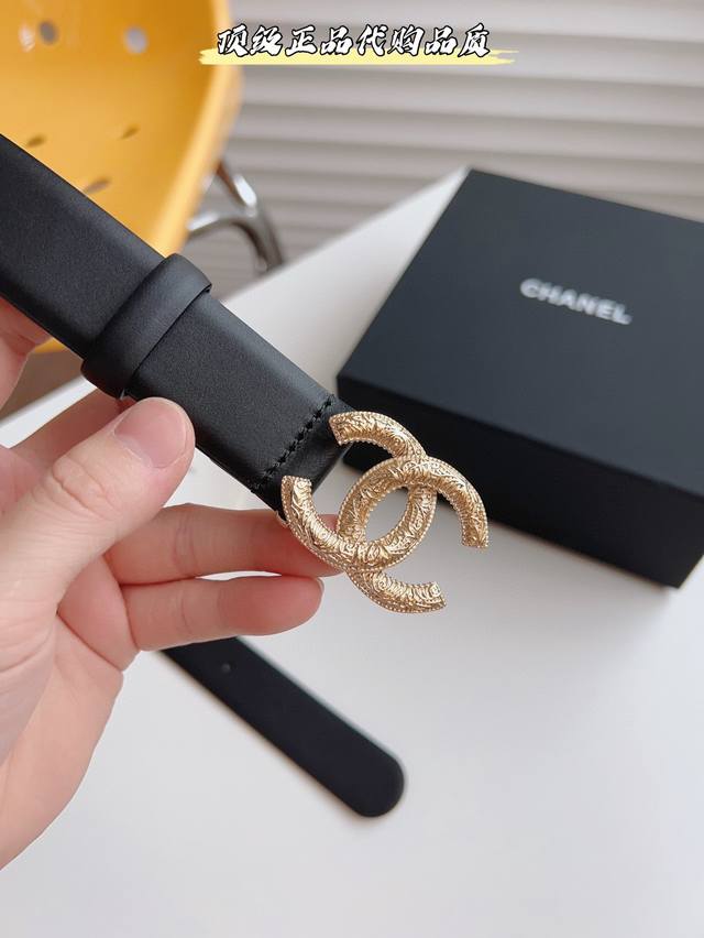 原版品质打卡 品牌:香奈C家 女款 颜色:黑 扣头:金 银 扣头:原版精品纯铜五金扣头 带身:原版牛皮 尺寸:宽约:3.0Cm...
