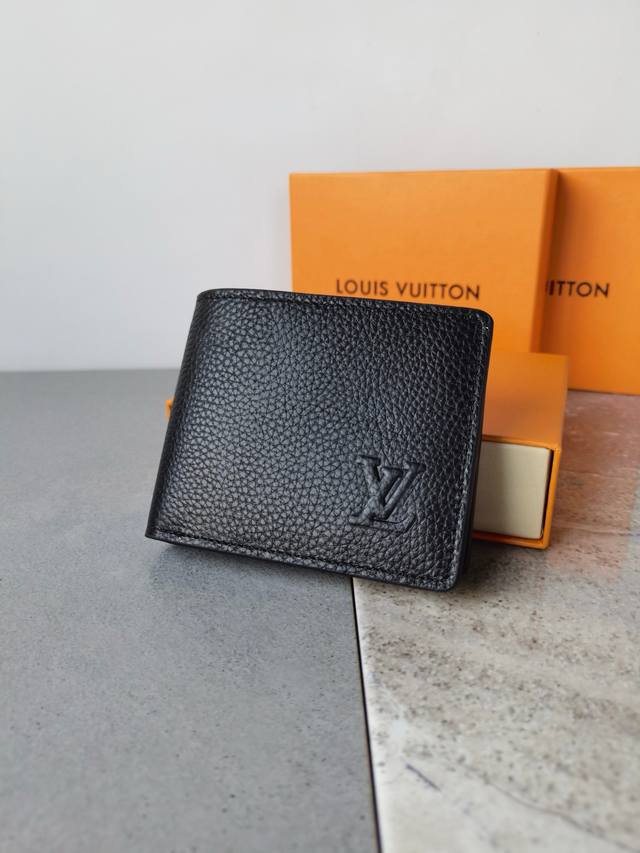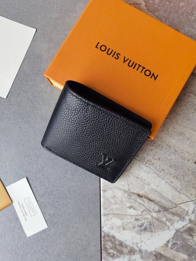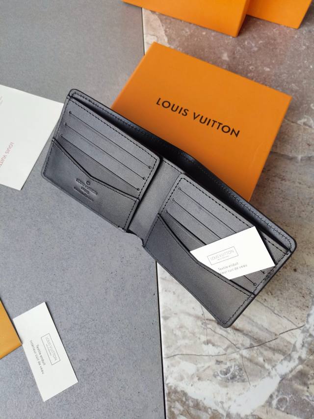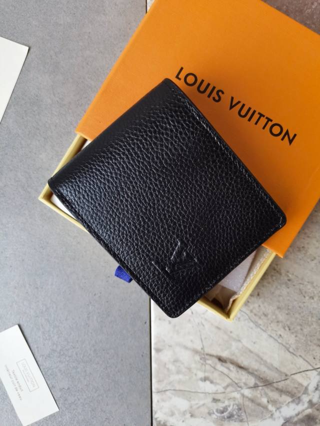 颜色 黑色尺寸 短12X10路易威登男士长短款对折一比一进口牛皮压花