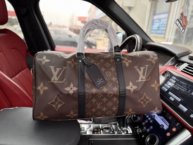 高端货 新款 “Louis Vuitton”Lv旅行袋 路易威登旅行袋 Louis Vuitton Keepall 50 老花压印可拆卸可调节肩带 皮革 旅行袋