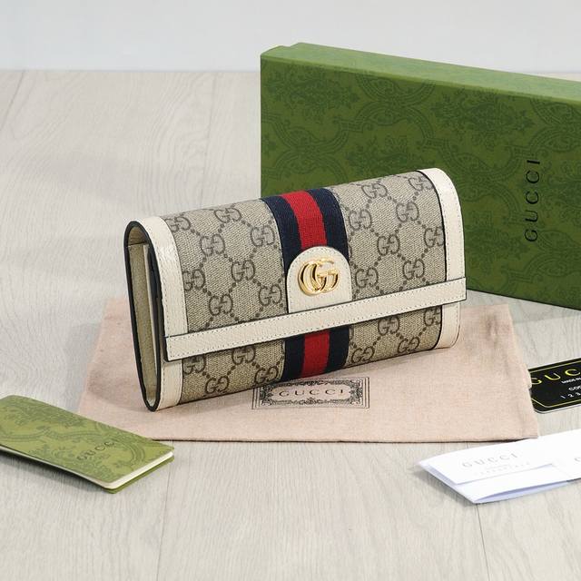 颜色 白尺寸 19X10型号 523153 官网同步新款!Ophidia系列~两折长夹,采用Gg Supreme高级Pvc面料配以标志性双G 五金唛头,经典著作红绿色织带,精制而成!