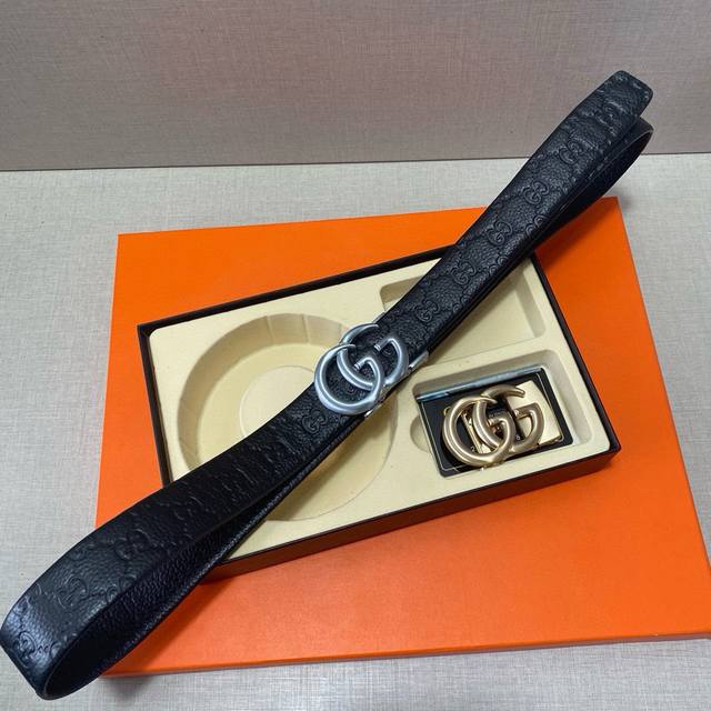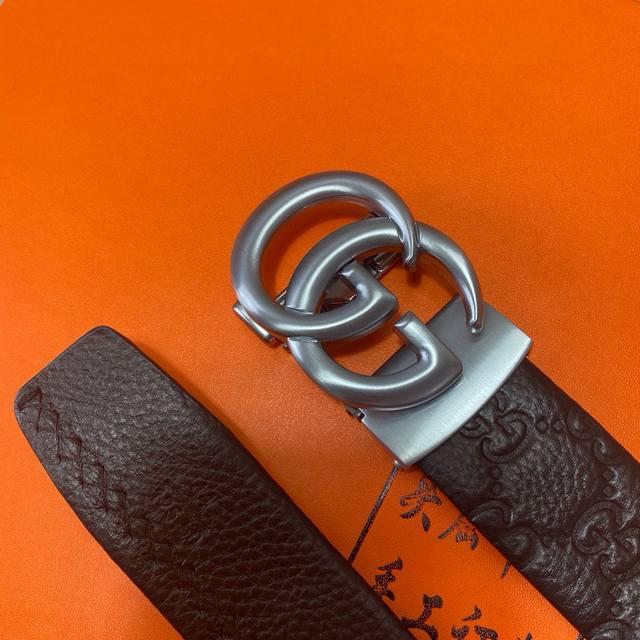 双扣皮带:头层皮质带身搭配3.5Cm仿铜扣头