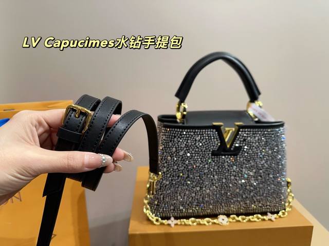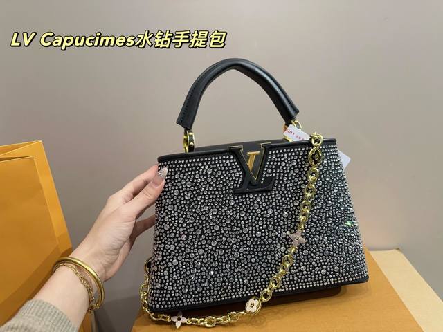 / 大号 折叠盒尺寸27.18 小号 折叠盒尺寸20.14 Lv Capucimes水钻手提包 经典贵妇包 优雅尽显